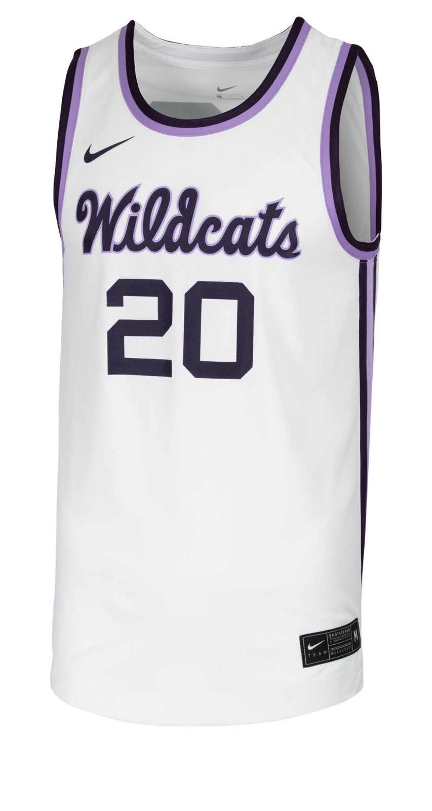 Kansas State Wildcats 2021-22 Throwback Home-Trikot, hergestellt von Nike und in der NCAA-2021-2022-Saison getragen. Das Kansas State Wildcats 2021-2022 Throwback Home-Trikot wird mit 4,0 von 5 Sternen bewertet