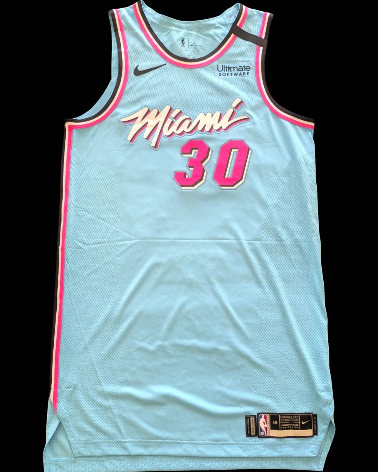 Miami Heat 2019-20 City V2-Trikot, hergestellt von Nike und in der NBA-2019-2020-Saison getragen. Das Miami Heat 2019-2020 City V2-Trikot wird mit 4,4 von 5 Sternen bewertet
