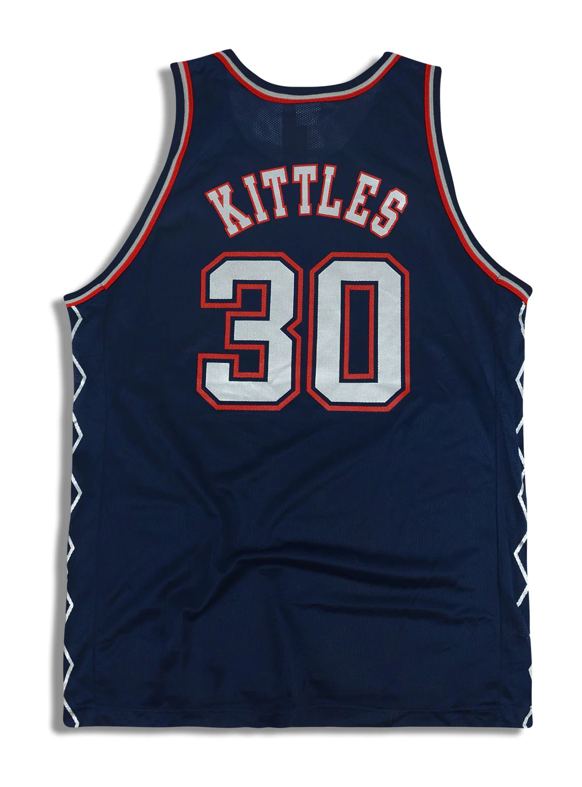 New Jersey Nets 1997-02 Away-Trikot, hergestellt von Champion und in der NBA über 5 Jahre zwischen 1997 und 2002 getragen. Das New Jersey Nets 1997-2002 Away-Trikot wird mit 4,1 von 5 Sternen bewertet
