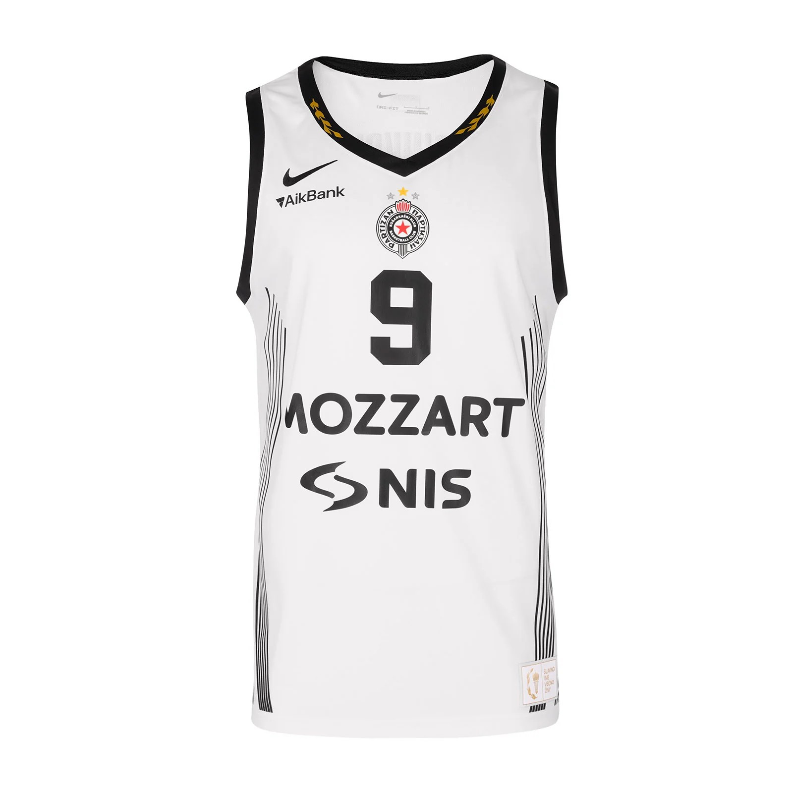 Partizan Belgrade 2025-26 Away-Trikot, hergestellt von Nike und in der Basketball League of Serbia-2025-2026-Saison getragen. Das Partizan Belgrade 2025-2026 Away-Trikot wird mit 4,3 von 5 Sternen bewertet