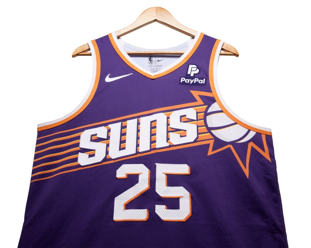 Phoenix Suns 2023-24 Icon-Trikot, hergestellt von Nike und in der NBA-2023-2024-Saison getragen. Das Phoenix Suns 2023-2024 Icon-Trikot wird mit 4,0 von 5 Sternen bewertet