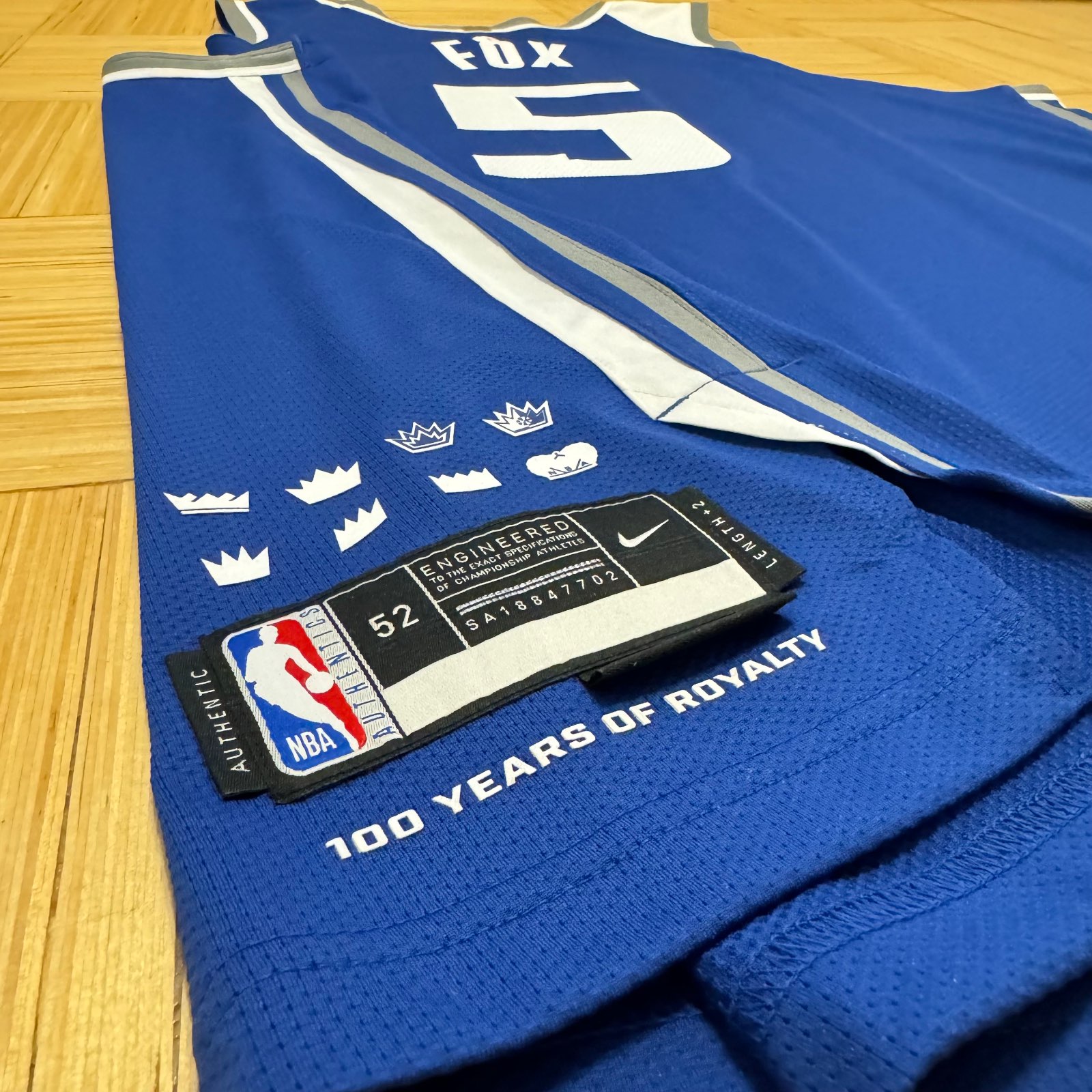 Sacramento Kings 2023-24 City-Trikot, hergestellt von Nike und in der NBA-2023-2024-Saison getragen. Das Sacramento Kings 2023-2024 City-Trikot wird mit 3,5 von 5 Sternen bewertet