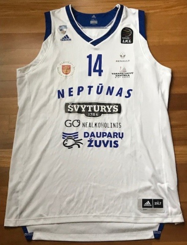 BC Neptūnas Klaipeda 2017-18 Home στολή, κατασκευασμένη από adidas και φορέθηκε στη σεζόν Lithuanian Basketball League 2017-2018. Η BC Neptūnas Klaipeda 2017-2018 Home φανέλα αξιολογείται με 5.0 αστέρια από τα 5.