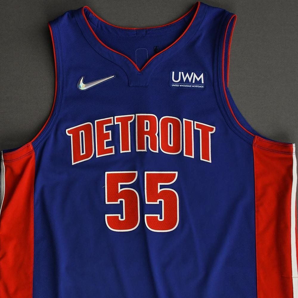 Detroit Pistons 2021-22 Icon στολή, κατασκευασμένη από Nike και φορέθηκε στη σεζόν NBA 2021-2022. Η Detroit Pistons 2021-2022 Icon φανέλα αξιολογείται με 3.7 αστέρια από τα 5.