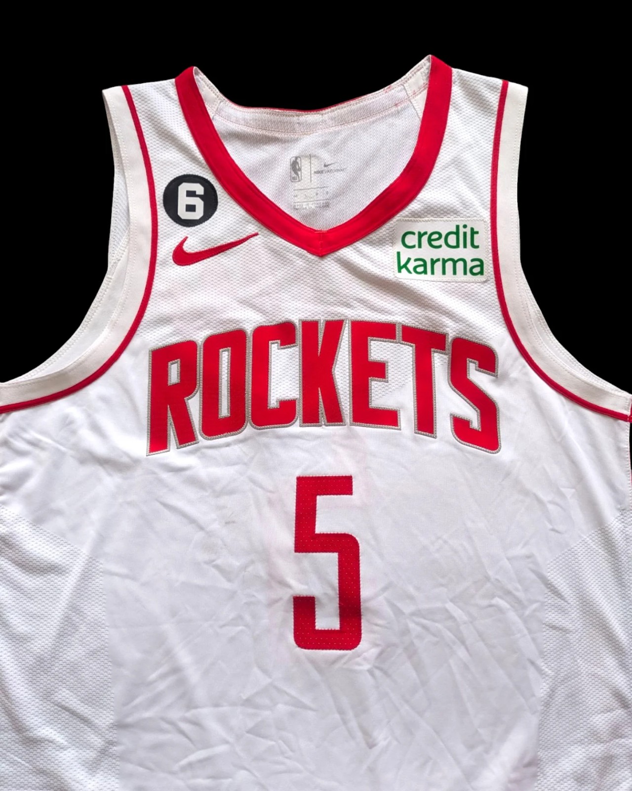 Houston Rockets 2022-23 Association στολή, κατασκευασμένη από Nike και φορέθηκε στη σεζόν NBA 2022-2023. Η Houston Rockets 2022-2023 Association φανέλα αξιολογείται με 2.6 αστέρια από τα 5.