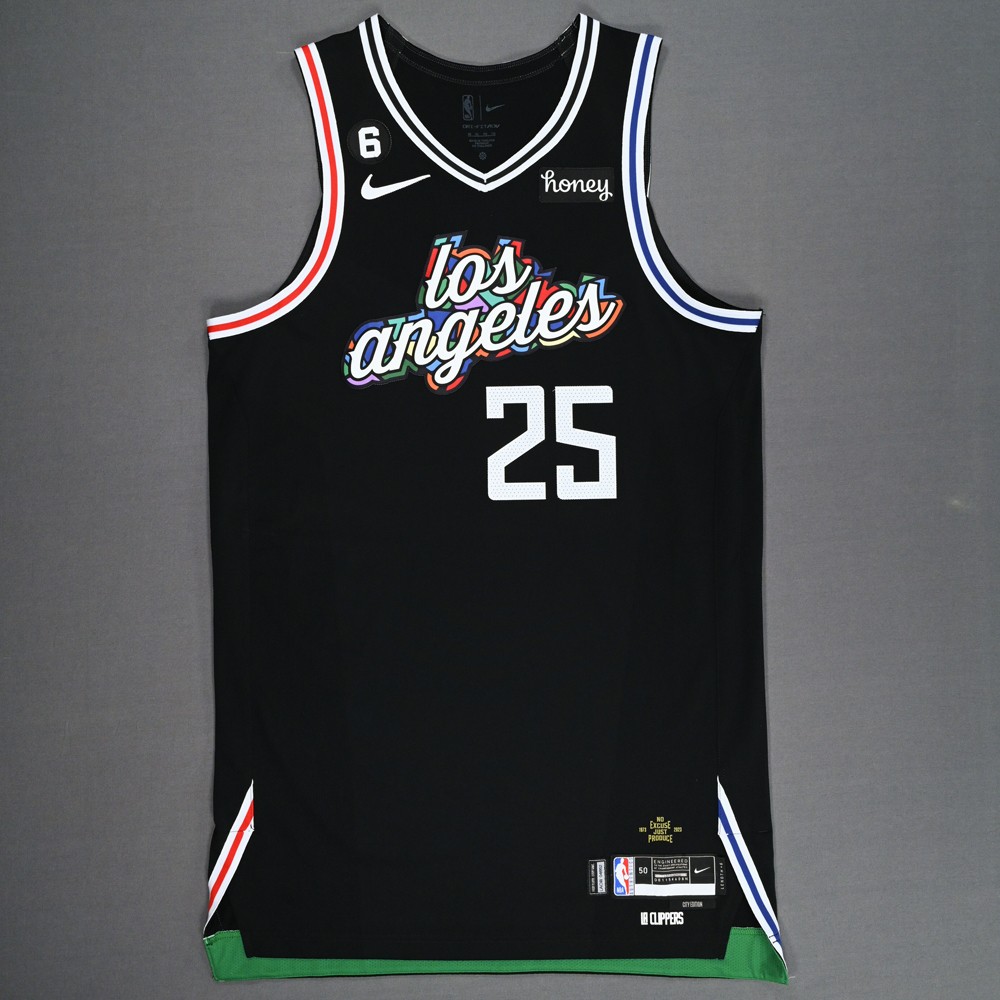 Los Angeles Clippers 2022-23 City στολή, κατασκευασμένη από Nike και φορέθηκε στη σεζόν NBA 2022-2023. Η Los Angeles Clippers 2022-2023 City φανέλα αξιολογείται με 4.1 αστέρια από τα 5.
