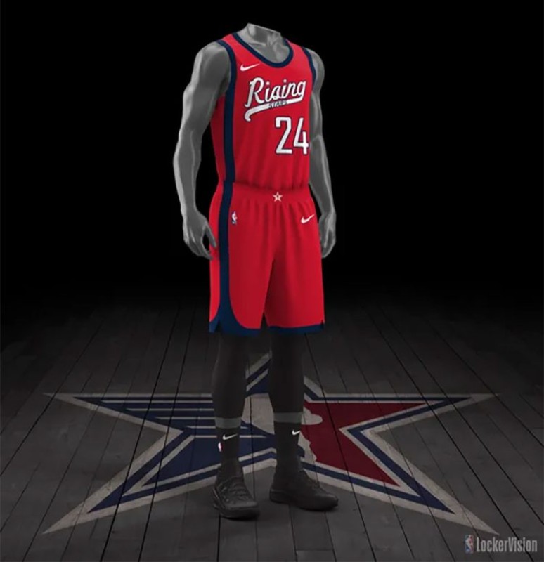 NBA Rising Stars 2023-24 Red στολή, κατασκευασμένη από Nike και φορέθηκε στη σεζόν NBA All-Star Game 2023-2024. Η NBA Rising Stars 2023-2024 Red φανέλα αξιολογείται με 2.7 αστέρια από τα 5.