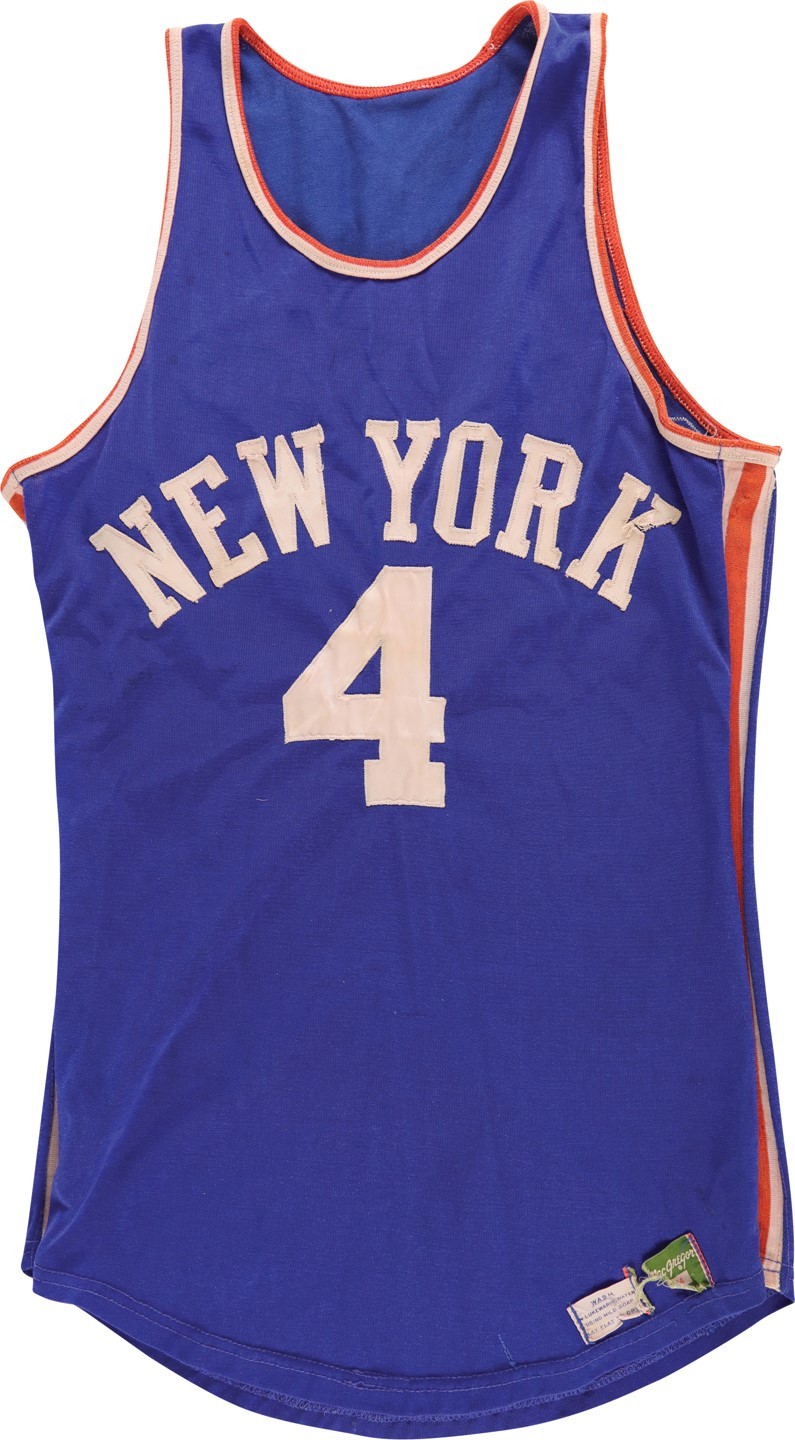 New York Knicks 1965-69 Away στολή, κατασκευασμένη από MacGregor και φορέθηκε στη/στο NBA για 4 χρόνια μεταξύ 1965 και 1969. Η New York Knicks 1965-1969 Away φανέλα αξιολογείται με 2.6 αστέρια από τα 5.