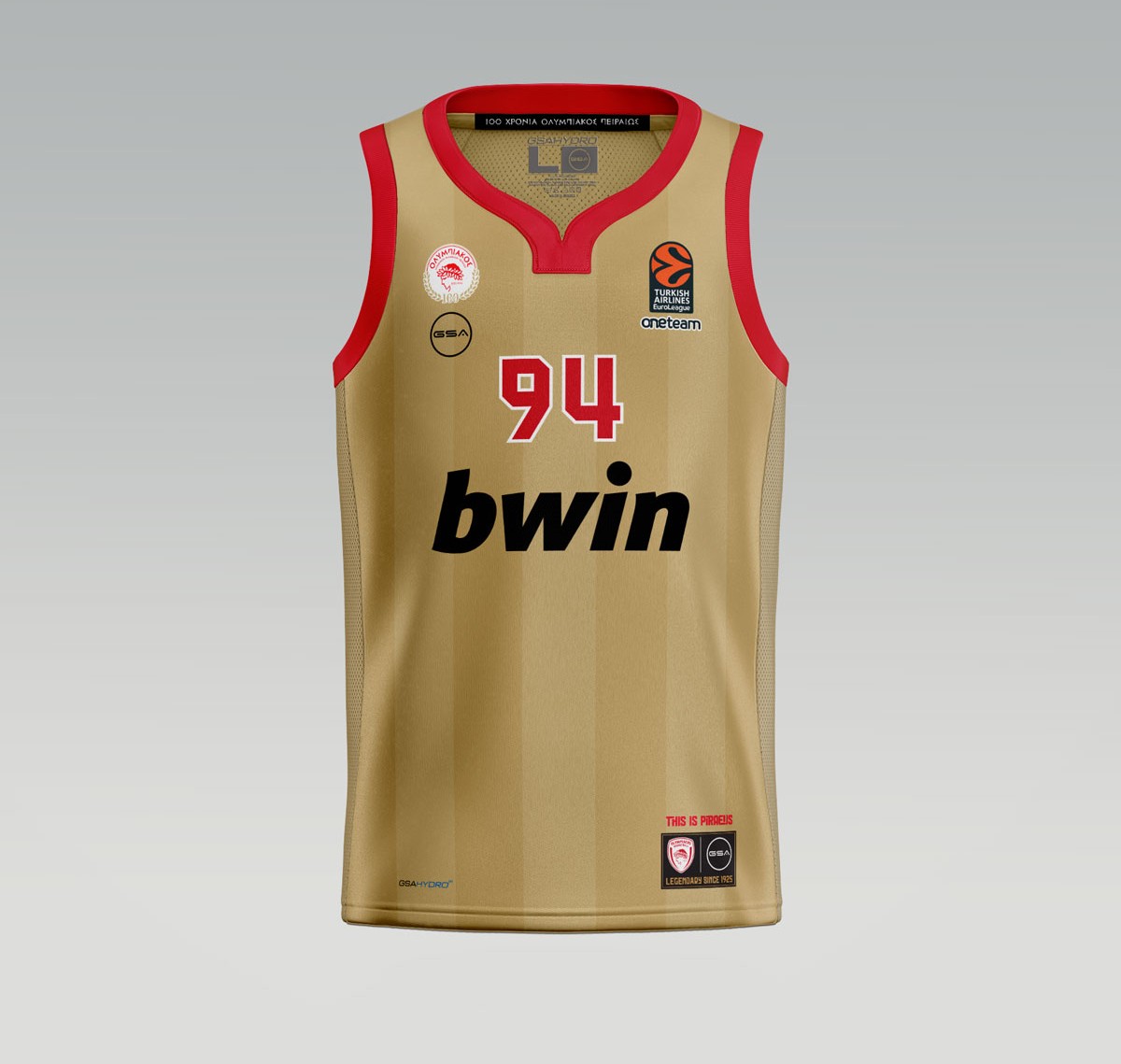Η τρίτη φανέλα του Ολυμπιακού 2024-25 είναι χρυσή με κόκκινες λεπτομέρειες για τον εορτασμό των 100 χρόνων του συλλόγου....