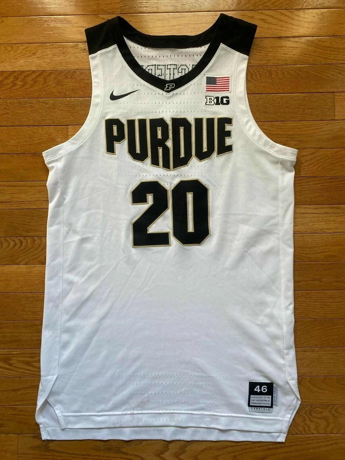 Purdue Boilermakers 2019-20 Home στολή, κατασκευασμένη από Nike και φορέθηκε στη σεζόν NCAA 2019-2020. Η Purdue Boilermakers 2019-2020 Home φανέλα αξιολογείται με - αστέρια από τα 5.