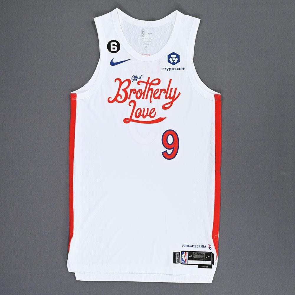 Uniforme Philadelphia 76ers 2022-23 City, confeccionado de Nike y utilizado en la temporada NBA 2022-2023. El Philadelphia 76ers 2022-2023 City jersey está valorado con 2,7 estrellas sobre 5.