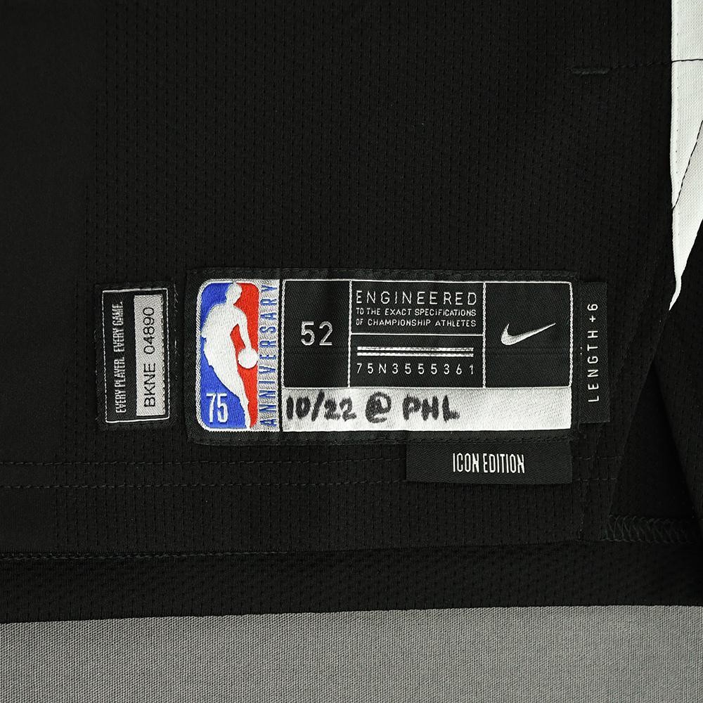 Uniforme Brooklyn Nets 2021-22 Icon, confeccionado de Nike y utilizado en la temporada NBA 2021-2022. El Brooklyn Nets 2021-2022 Icon jersey está valorado con 3,5 estrellas sobre 5.