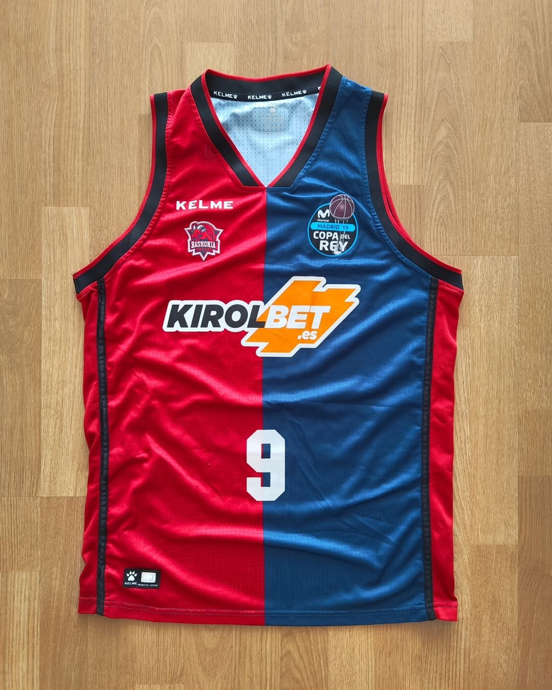 Uniforme Baskonia 2019-20 Home, confeccionado de Kelme y utilizado en la temporada Liga ACB 2019-2020. El Baskonia 2019-2020 Home jersey está valorado con - estrellas sobre 5.