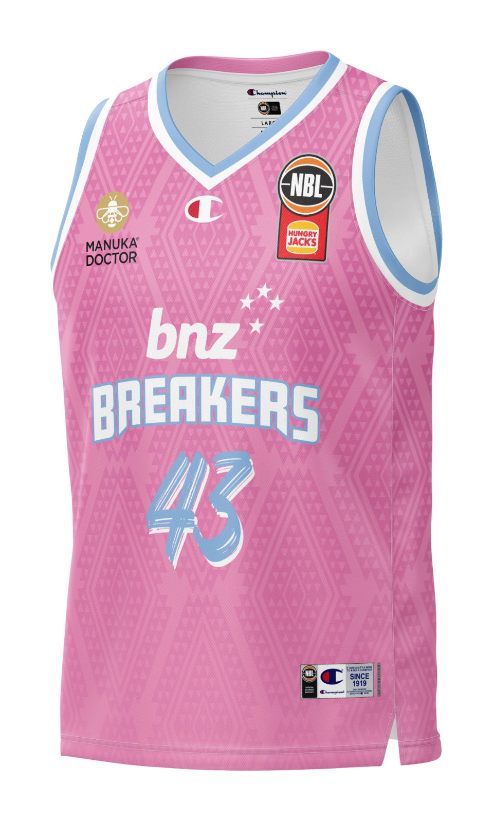 Uniforme New Zealand Breakers 2024-25 Home, confeccionado de Champion y utilizado en la temporada NBL 2024-2025. El New Zealand Breakers 2024-2025 Home jersey está valorado con 4,2 estrellas sobre 5.