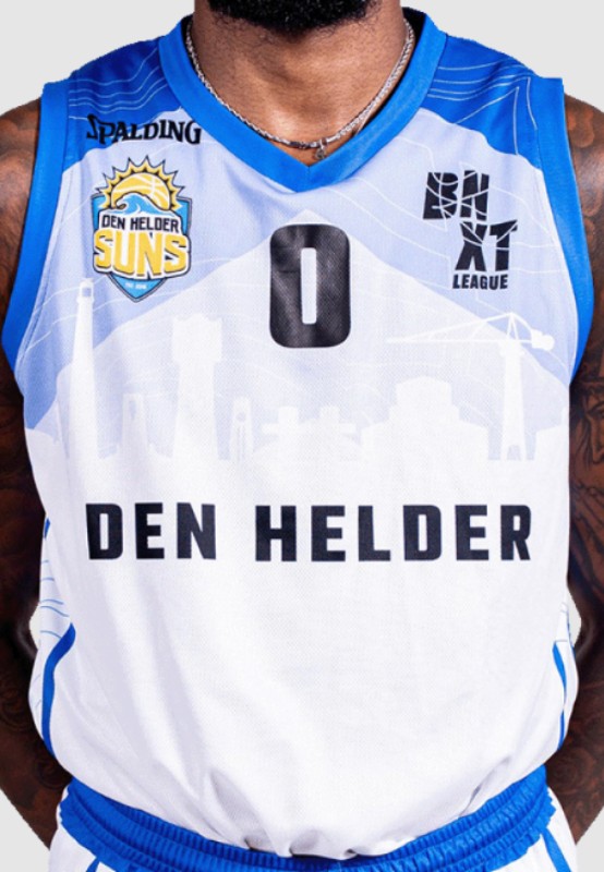 L'uniforme Den Helder Suns 2025-26 Home, fabriqué par Spalding et porté pendant la saison BNXT League 2025-2026. Le maillot Den Helder Suns 2025-2026 Home est noté avec - étoiles sur 5.