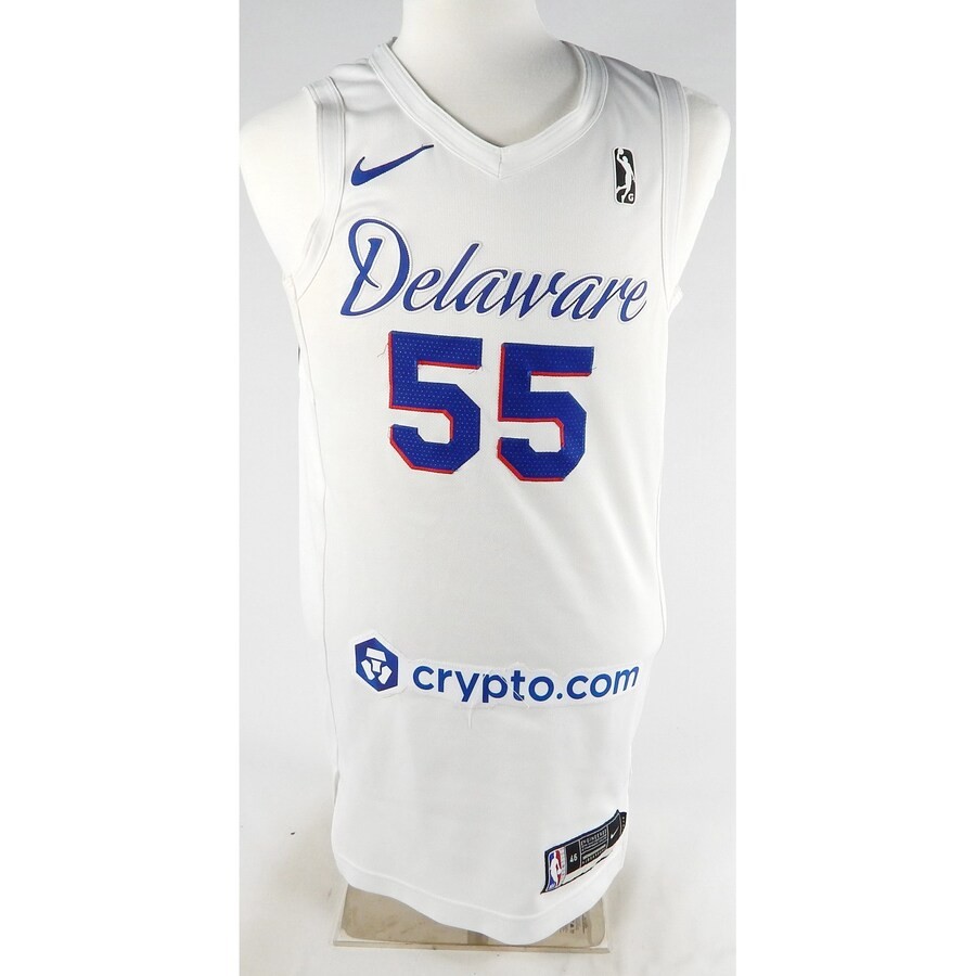 Seragam Delaware Blue Coats 2021-25 Association, dibuat oleh Nike dan dikenakan di G League selama 4 tahun antara 2021 dan 2025. Seragam Delaware Blue Coats 2021-2025 Association dinilai dengan - bintang dari 5 bintang.