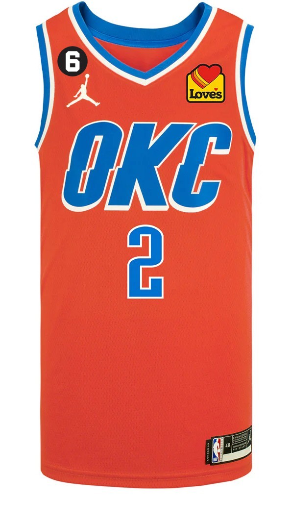 Seragam Oklahoma City Thunder 2022-23 Statement, dibuat oleh Air Jordan dan dikenakan pada musim NBA 2022-2023. Seragam Oklahoma City Thunder 2022-2023 Statement ini dinilai dengan 3.7 bintang dari 5 bintang.