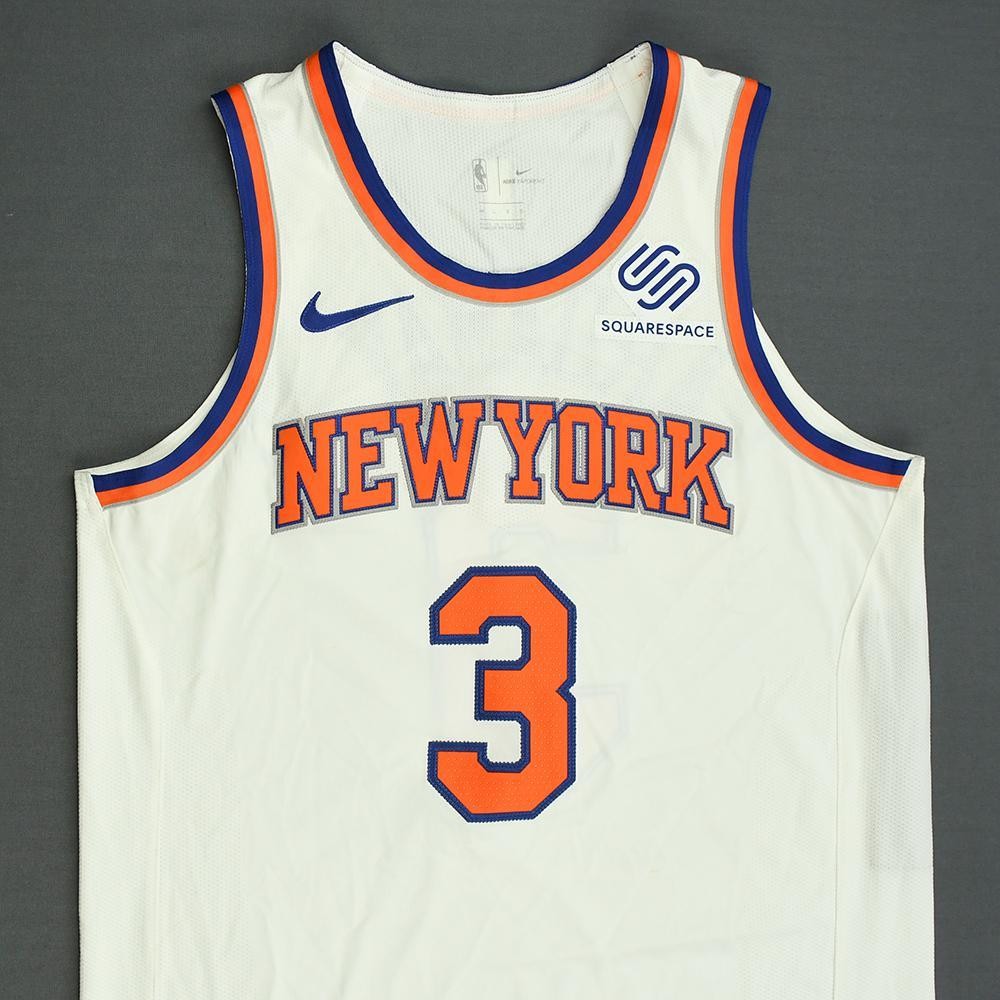 Divisa New York Knicks 2017-21 Association, realizzata da Nike e indossata nelle NBA per 4 anni tra le 2017 e le 2021. La maglia New York Knicks 2017-2021 Association è valutata con 3,1 stelle su 5.