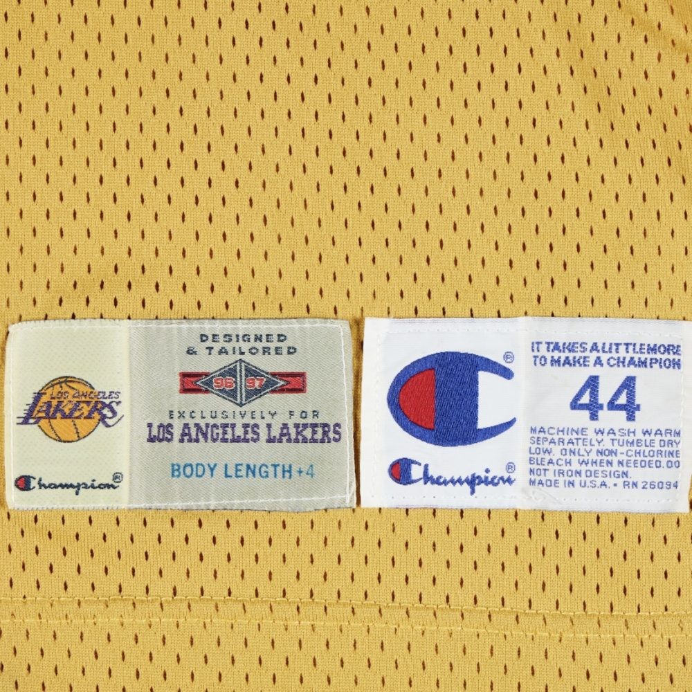Los Angeles Lakers 1996-97 Home uniform, made by Champion and worn in the NBA 1996-1997 season. The Los Angeles Lakers 1996-1997 Home jersey is rated with 4.2 stars out of 5.