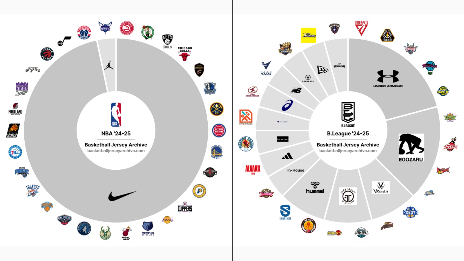 One of the most distinct features of the B.League, particularly when compared to its North American counterpart, is its approach to apparel. While the NBA operates with a single official outfitter, the Japanese B.League featured jerseys from 14 different suppliers in the 2024-25 season.