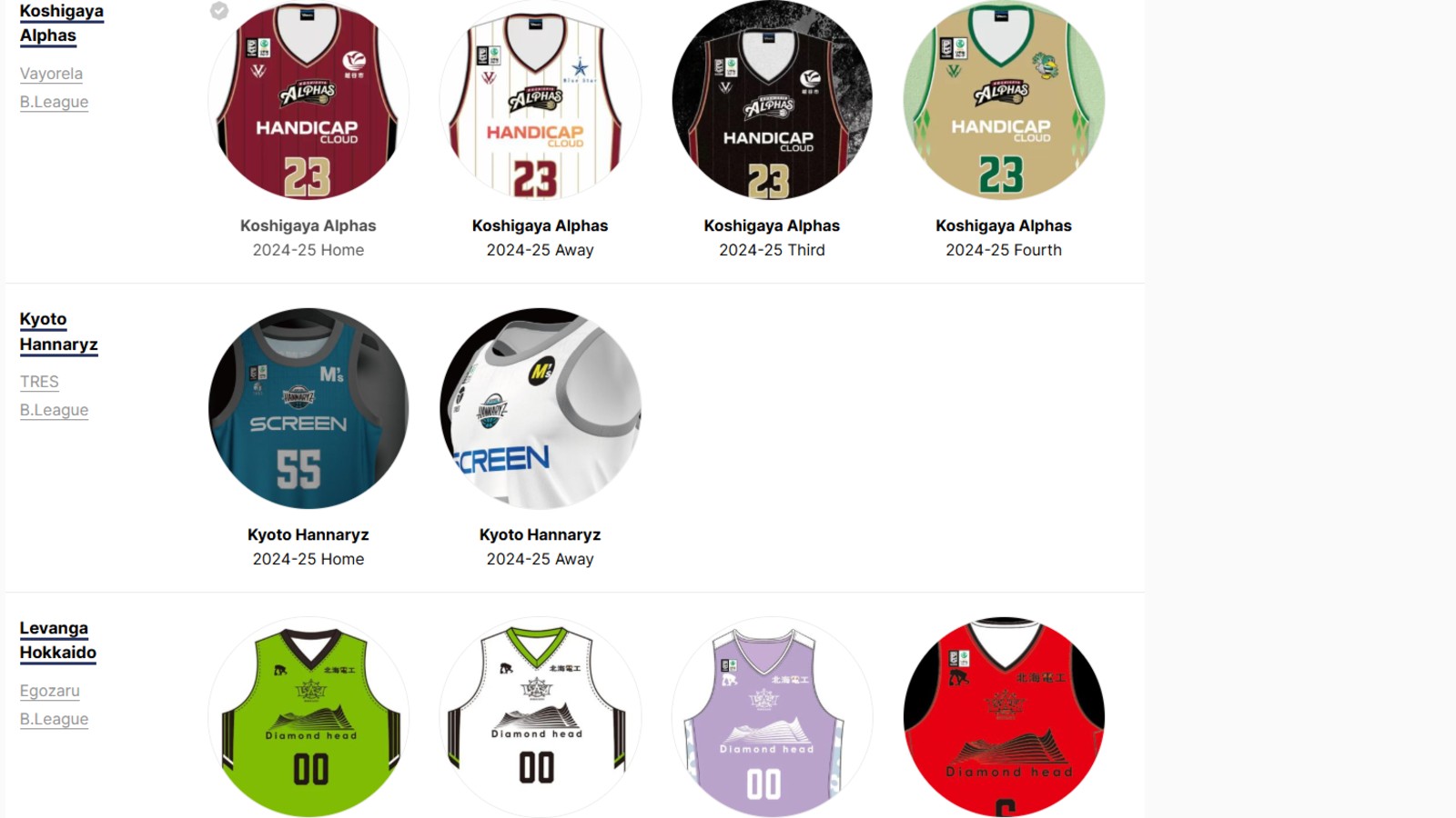 Our new B.League section documents this variety with photos of home, away, and alternate jerseys for all teams in the top divisions. We will constantly try to expand our archive with past seasons and more leagues in the future.