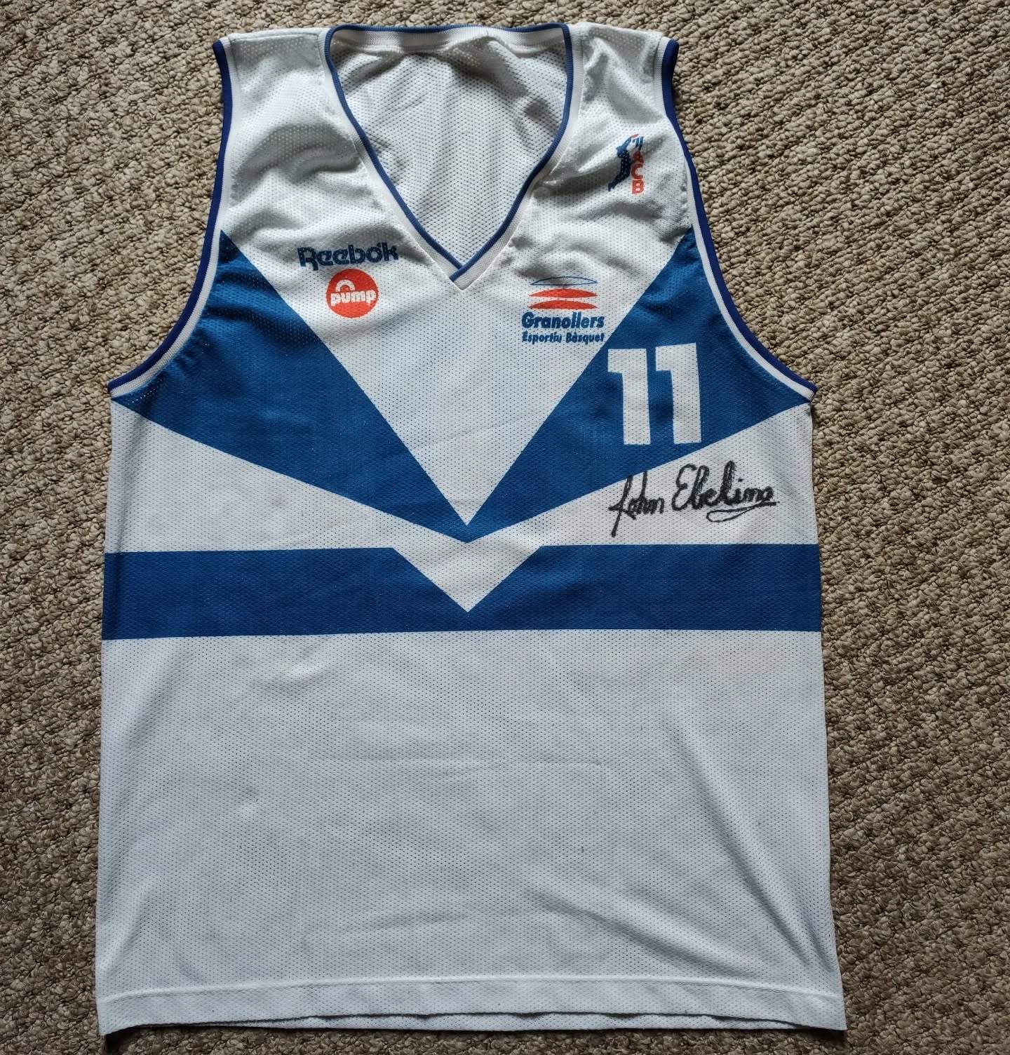 Club Bàsquet Granollers 1991-92 Away tenue, gemaakt von Reebok en gedragen in het Liga ACB 1991-1992 seizoen. Het Club Bàsquet Granollers 1991-1992 Away shirt is beoordeeld met - sterren van de 5.
