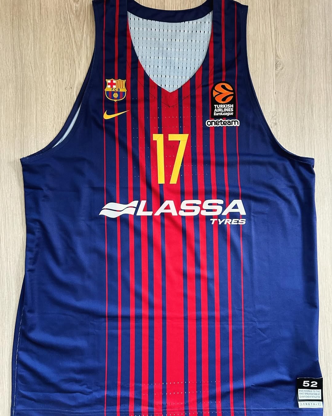 FC Barcelona 2017-18 Euroleague Home tenue, gemaakt von Nike en gedragen in het EuroLeague 2017-2018 seizoen. Het FC Barcelona 2017-2018 Euroleague Home shirt is beoordeeld met 3,0 sterren van de 5.