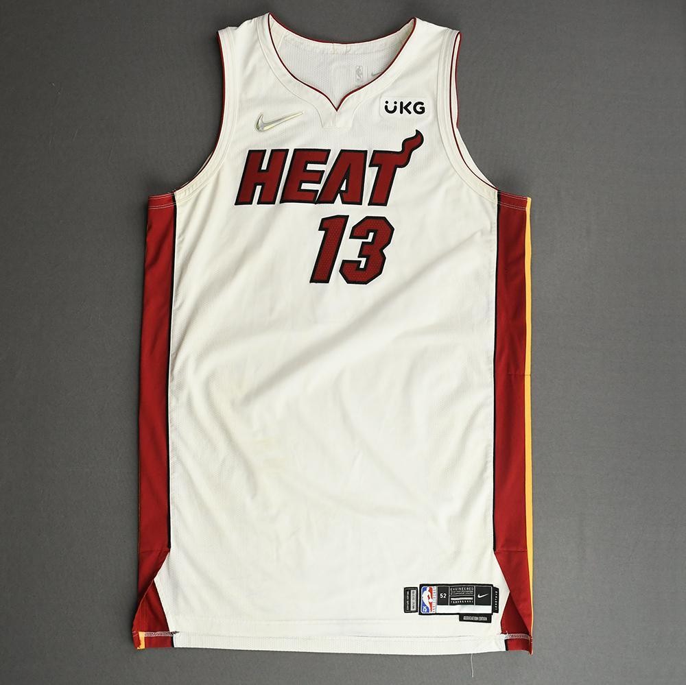 Miami Heat 2021-22 Association tenue, gemaakt von Nike en gedragen in het NBA 2021-2022 seizoen. Het Miami Heat 2021-2022 Association shirt is beoordeeld met 3,5 sterren van de 5.