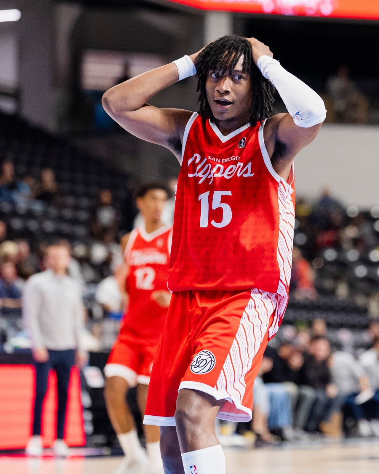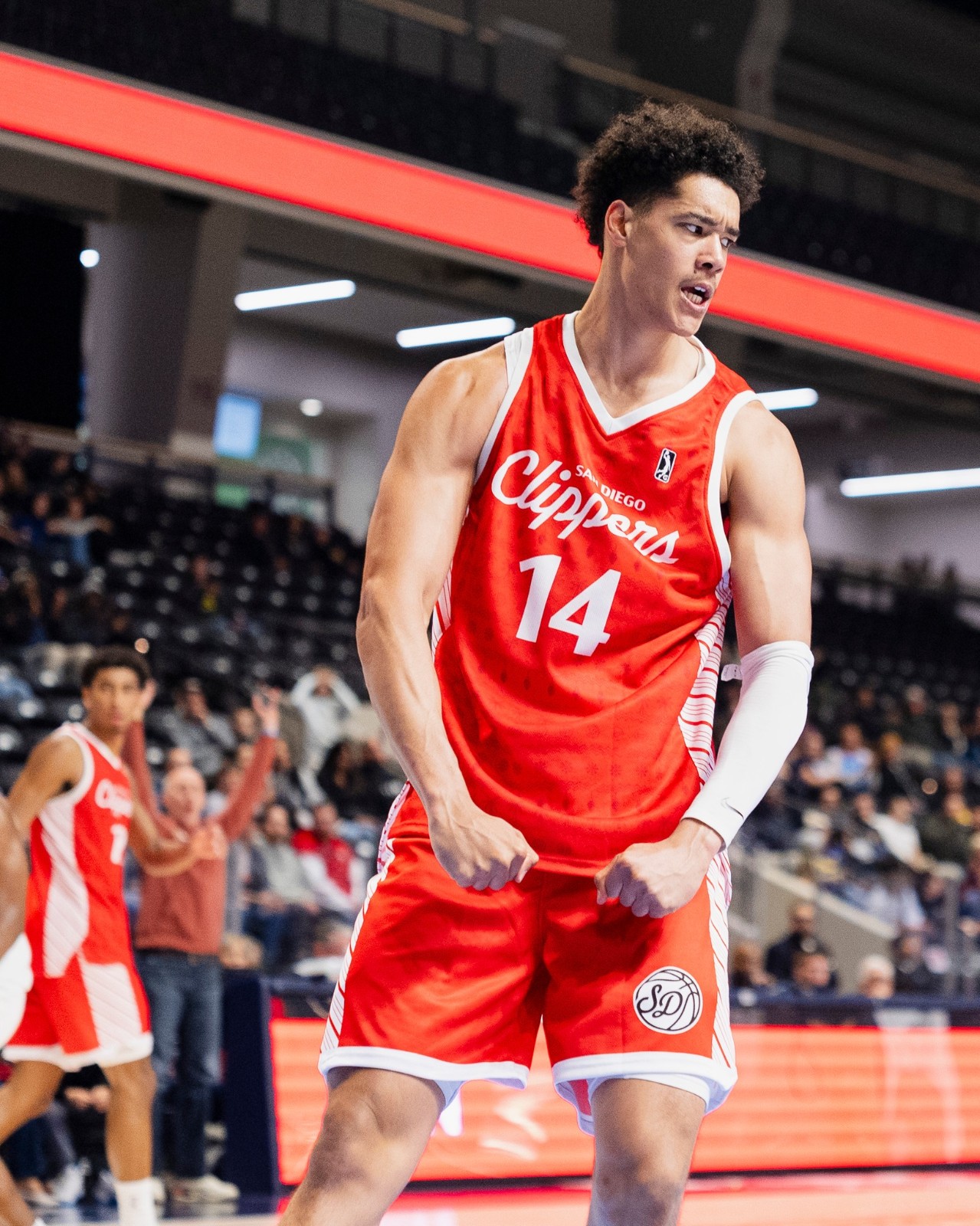 San Diego Clippers 2025-26 Christmas tenue, gemaakt van de vereniging en gedragen in het G League 2025-2026 seizoen. Het San Diego Clippers 2025-2026 Christmas shirt is beoordeeld met - sterren van de 5.