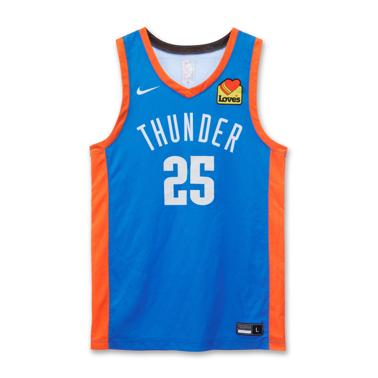 Oklahoma City Thunder 2024 Summer League Away uniform, made by Nike and worn in the NBA Summer League in 2024 and 2025. The Oklahoma City Thunder 2024-2025 Summer League Away jersey is rated with 2.5 stars out of 5.