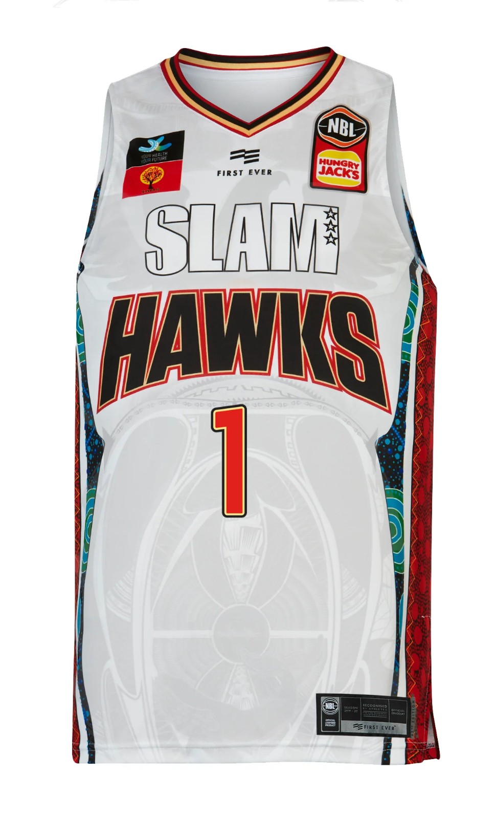 Strój Illawarra Hawks 2019-20 Indigenous, wyprodukowany Przez First Ever i noszony w sezonie NBL 2019-2020. Koszulka Illawarra Hawks 2019-2020 Indigenous jest oceniana na - gwiazdek z 5.