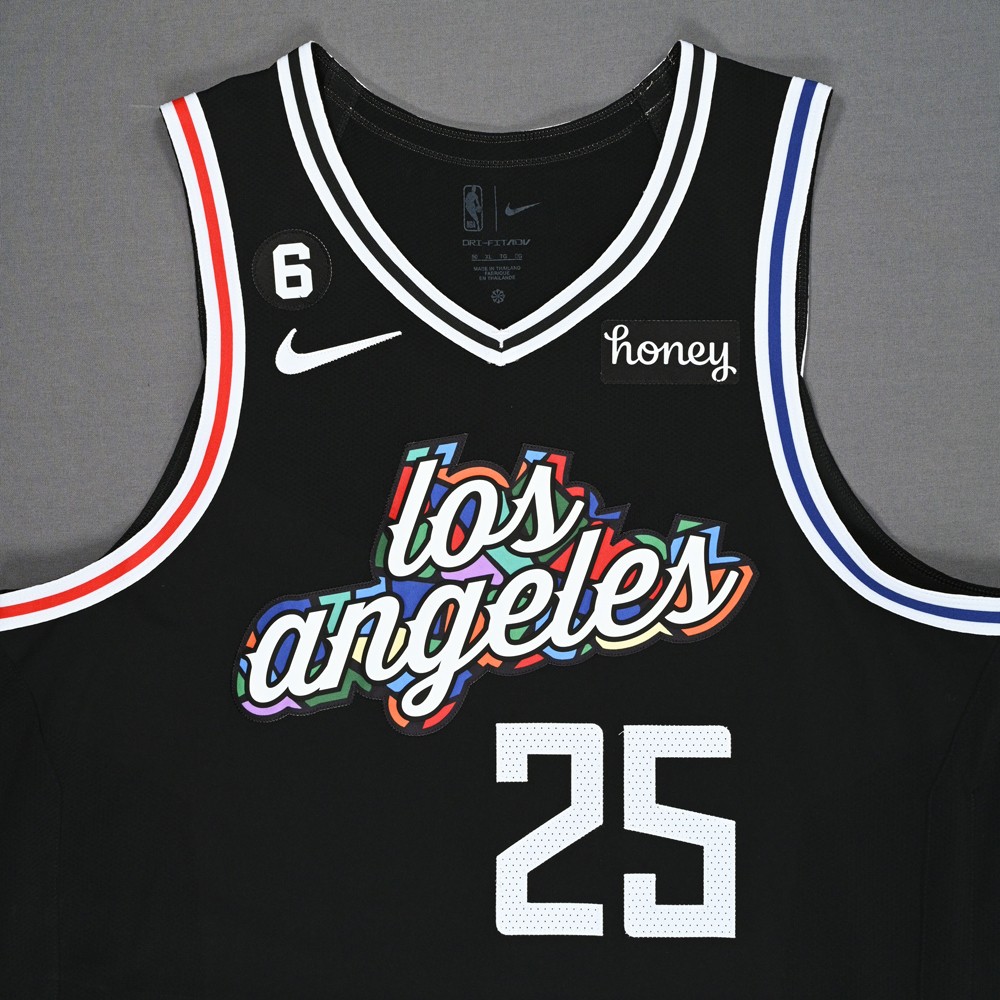 Strój Los Angeles Clippers 2022-23 City, wyprodukowany Przez Nike i noszony w sezonie NBA 2022-2023. Koszulka Los Angeles Clippers 2022-2023 City jest oceniana na 4. 1 gwiazdek z 5.