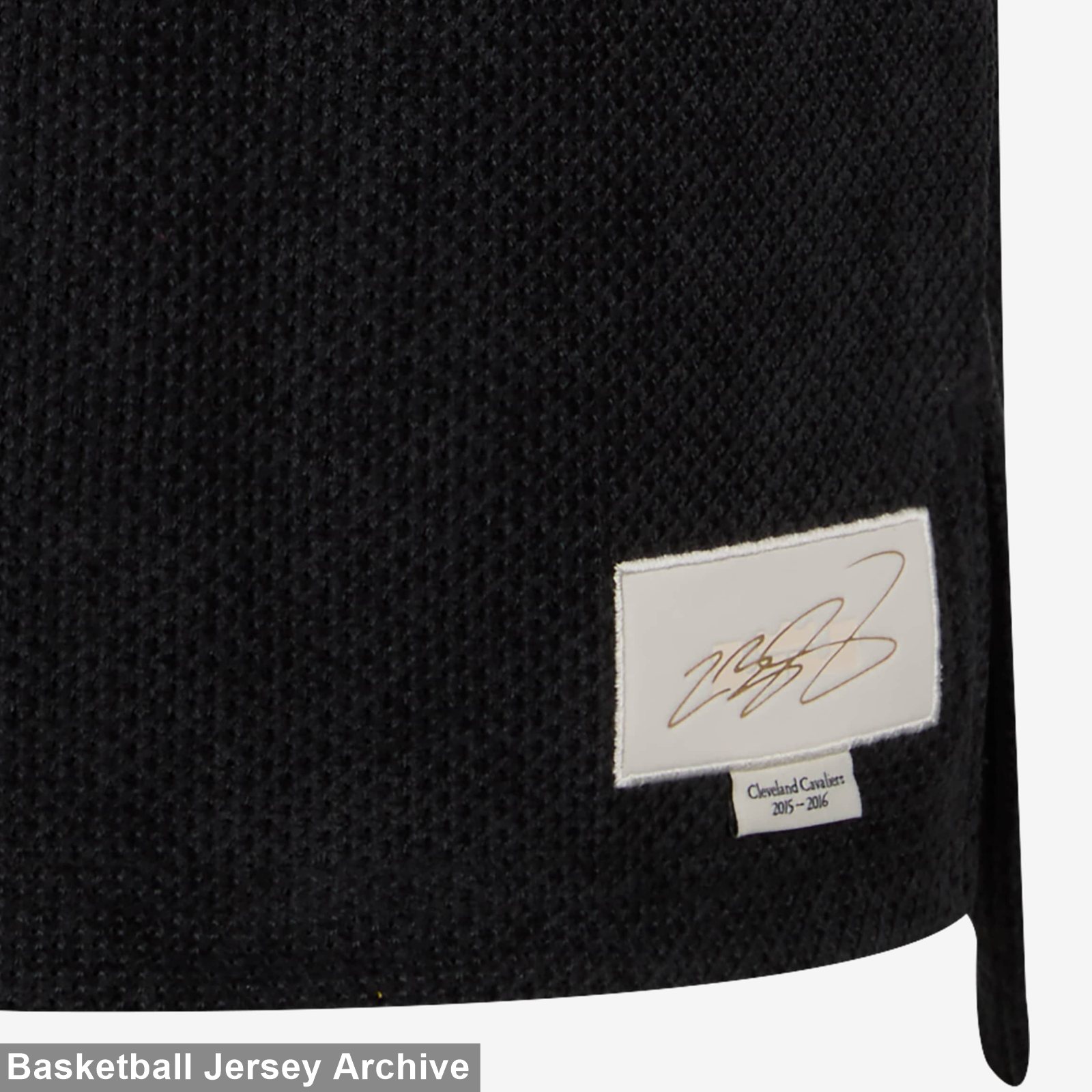 A standout feature of the special-edition Nike Cleveland Cavaliers 15-16 LeBron James Tribute Jersey is the bespoke jock tag located on the lower left hem. It includes LeBron James' signature alongside the inscription "Cleveland Cavaliers 2015-2016" to commemorate the unforgettable title-winning campaign.
