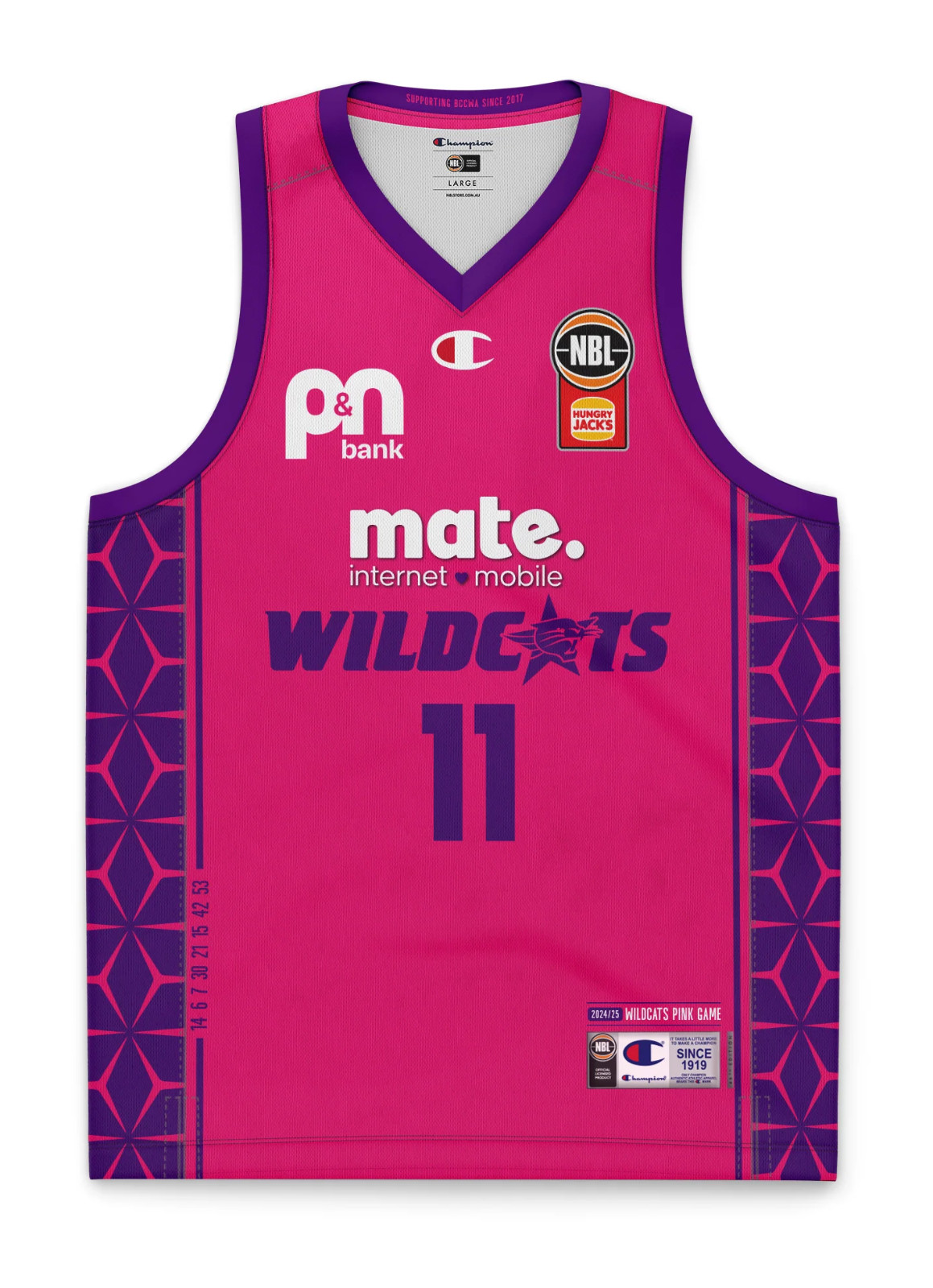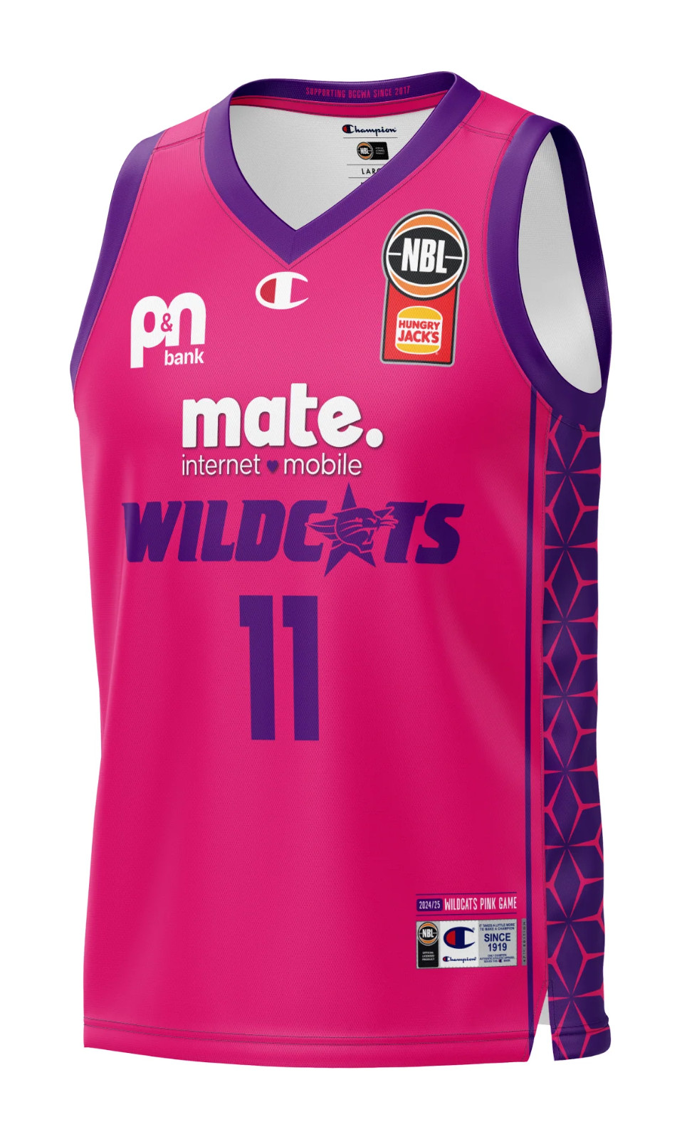 Strój Perth Wildcats 2024-25 Charity, wyprodukowany Przez Champion i noszony w sezonie NBL 2024-2025. Koszulka Perth Wildcats 2024-2025 Charity jest oceniana na - gwiazdek z 5.