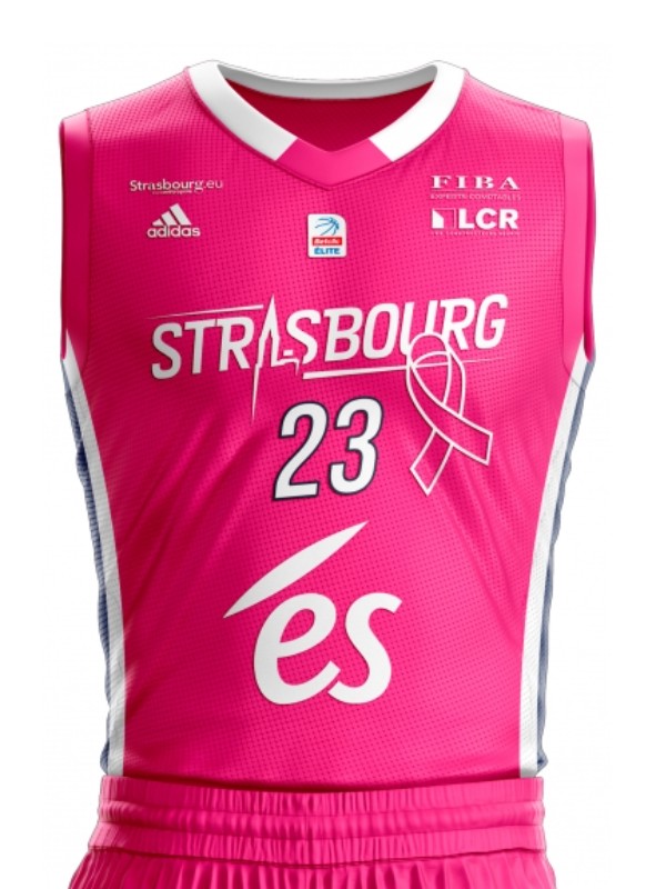 Strój SIG Strasbourg 2022-23 Pink October, wyprodukowany Przez adidas i noszony w sezonie LNB Pro A 2022-2023. Koszulka SIG Strasbourg 2022-2023 Pink October jest oceniana na 3. 0 gwiazdek z 5.