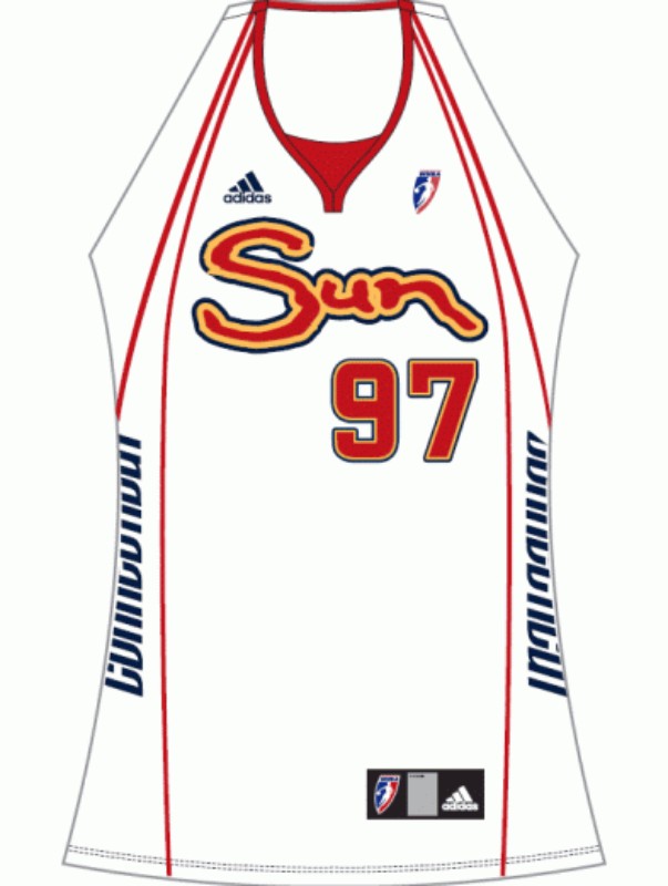 Uniforme de Connecticut Sun 2008-10 Home, feito por adidas e usado nos WNBA durante 2 anos entre 2008 e 2010. A camisola de Connecticut Sun 2008-2010 Home está classificada com 3,5 estrelas em 5.