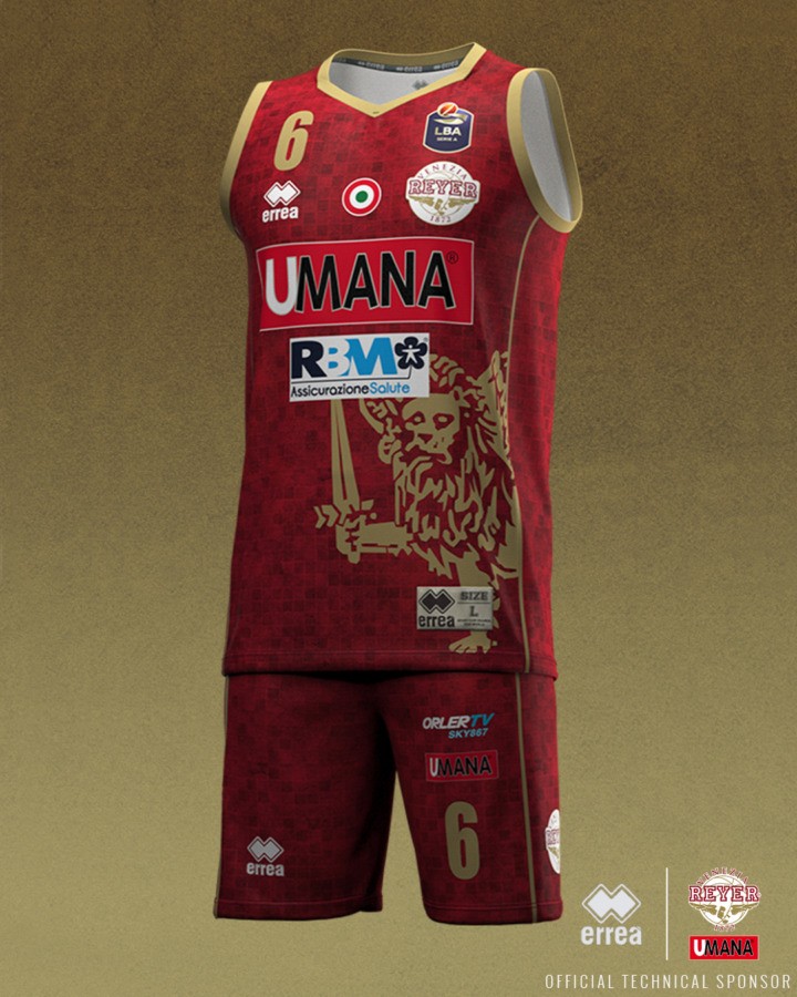 Uniforme de Reyer Venezia 2020-21 Home, feito por Errea e usado na época de Lega Basket Serie A 2020-2021. A camisola Reyer Venezia 2020-2021 Home é classificada com 3,0 estrelas em 5.