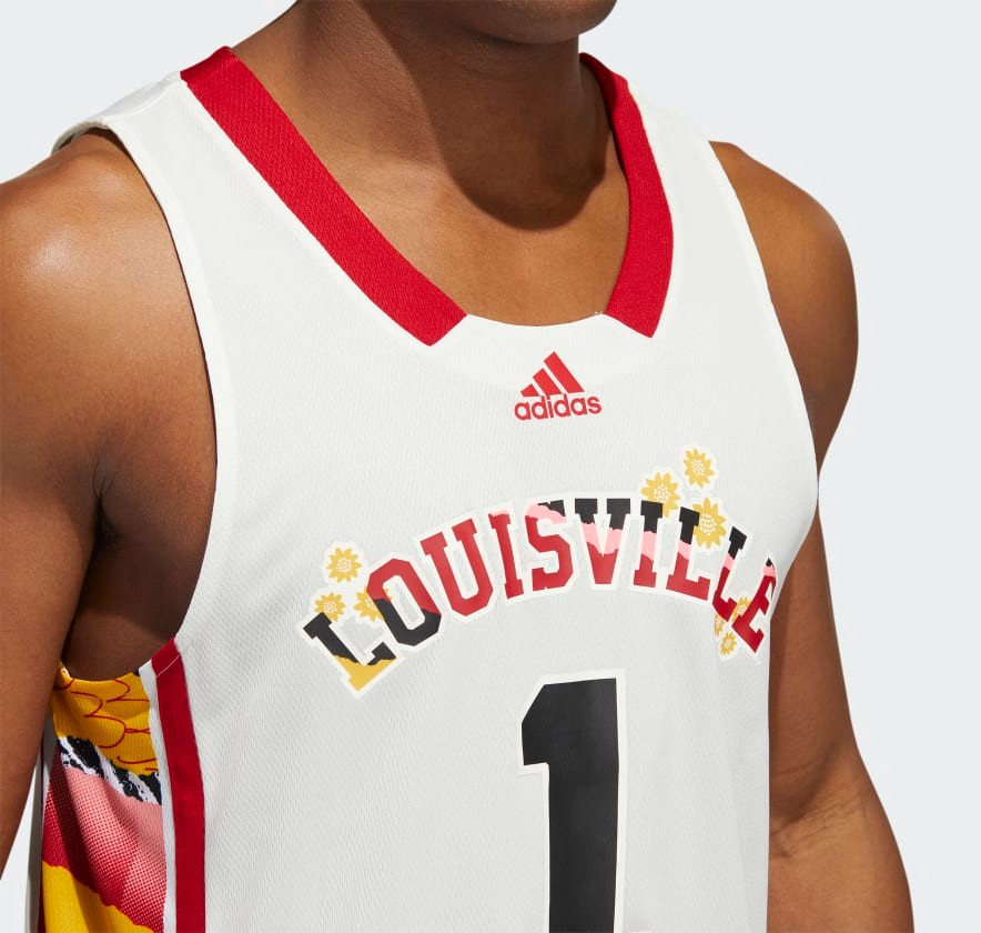 Uniforme de Louisville Cardinals 2021-22 Special, feito por adidas e usado na época de NCAA 2021-2022. A camisola Louisville Cardinals 2021-2022 Special é classificada com 4,0 estrelas em 5.