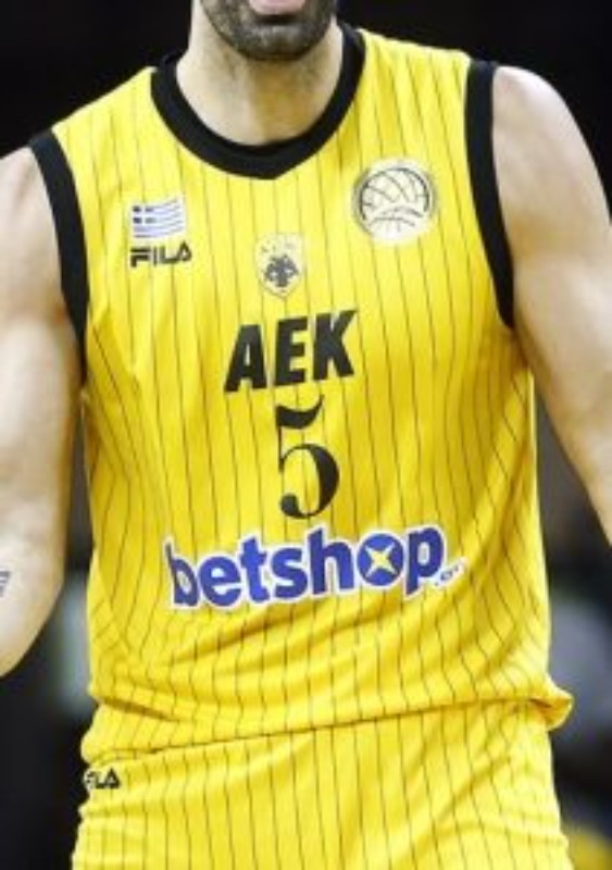 Uniforme de AEK Athens 2018-19 European Home, feito por Fila e usado na época de Greek Basket League 2018-2019. A camisola AEK Athens 2018-2019 European Home é classificada com 5,0 estrelas em 5.