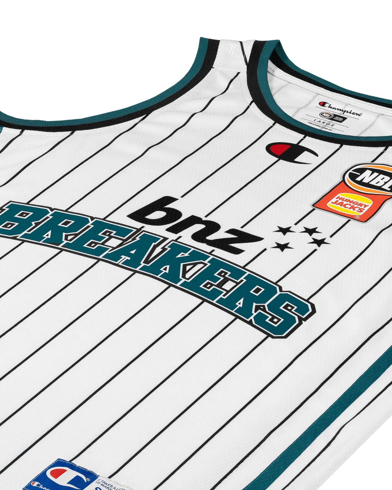 Uniforme de New Zealand Breakers 2025-26 HoopsFest, feito por Champion e usado na época de NBL 2025-2026. A camisola New Zealand Breakers 2025-2026 HoopsFest é classificada com - estrelas em 5.