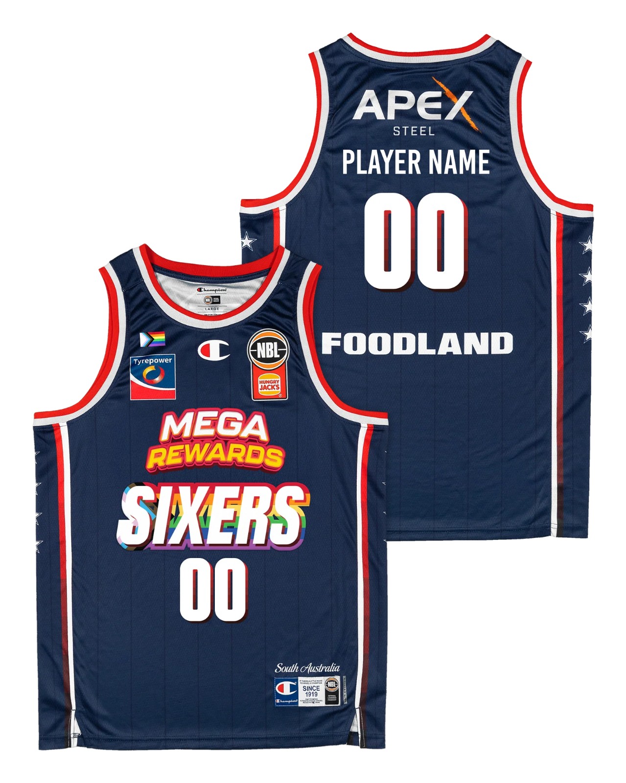 Uniforme de Adelaide 36ers 2025-26 Pride, feito por Champion e usado na época de NBL 2025-2026. A camisola Adelaide 36ers 2025-2026 Pride é classificada com - estrelas em 5.