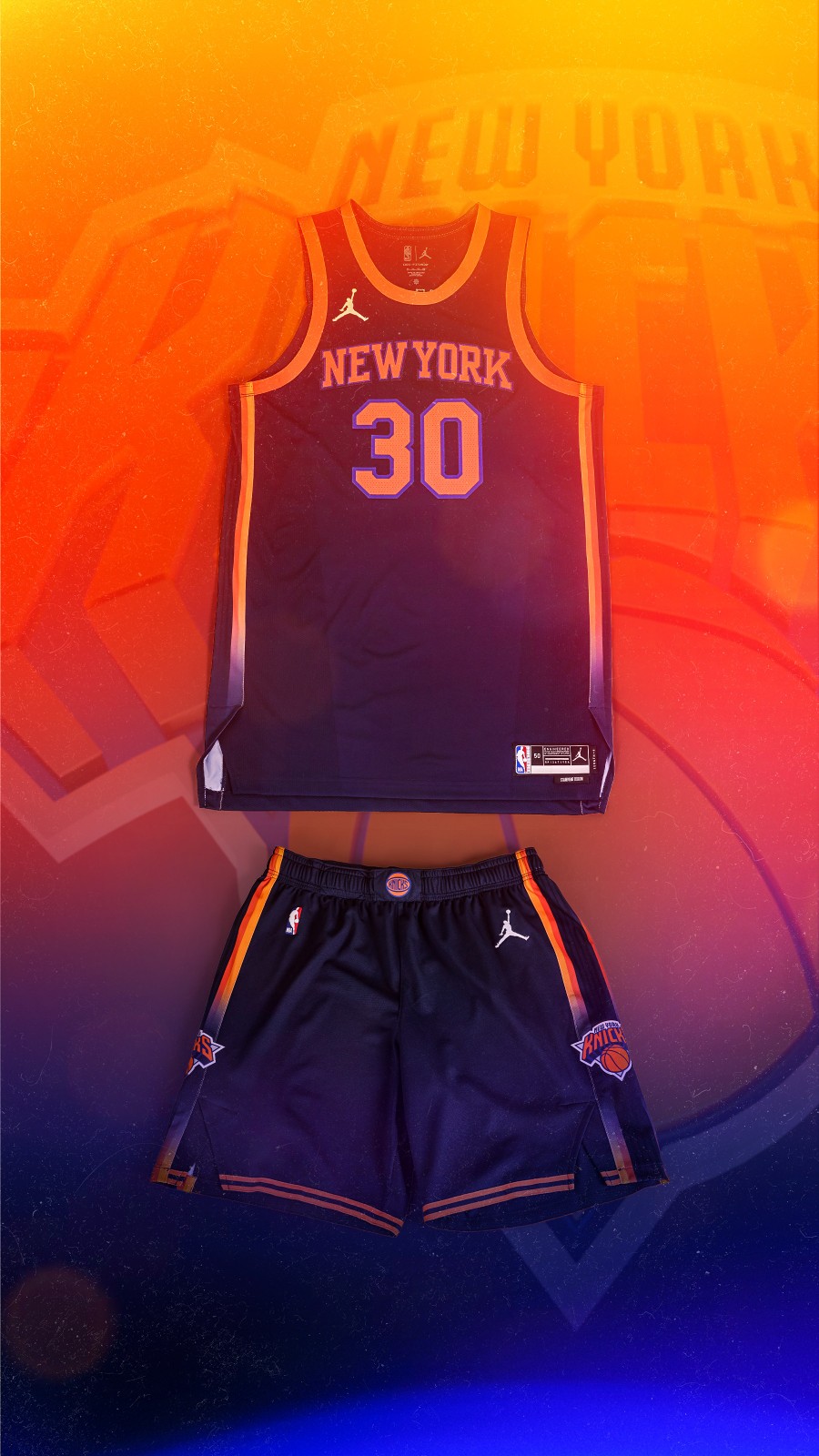 Uniforme de New York Knicks 2023-24 Statement, feito por Air Jordan e usado na época de NBA 2023-2024. A camisola New York Knicks 2023-2024 Statement é classificada com 3,8 estrelas em 5.