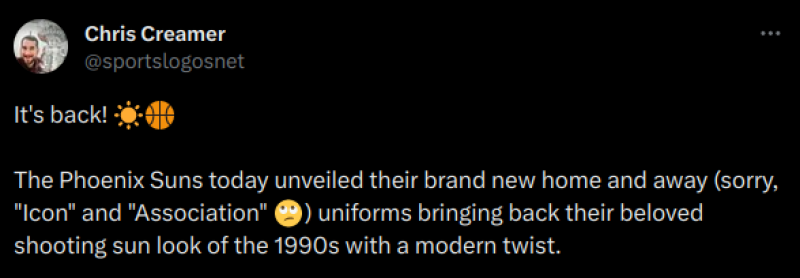This tweet has occurred on our timeline, where Chris Creamer of sportslogos.net seems annoyed about the name of the jerseys. The problem with names like 'Association', 'Icon' & 'Statement' is that they say nothing about the jersey itself. Names like Primary & Secondary or Home & Away would suit better names for the jerseys.
