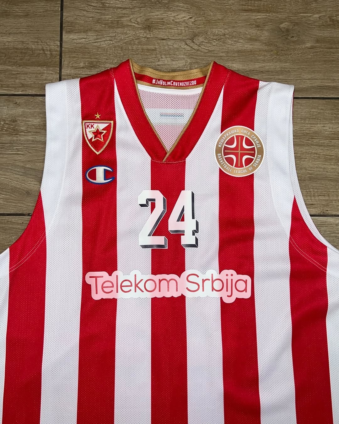 Red Star Belgrade 2015-16 Home uniform, made by Champion and worn in the Basketball League of Serbia 2015-2016 season. The Red Star Belgrade 2015-2016 Home jersey is rated with 4.0 stars out of 5.