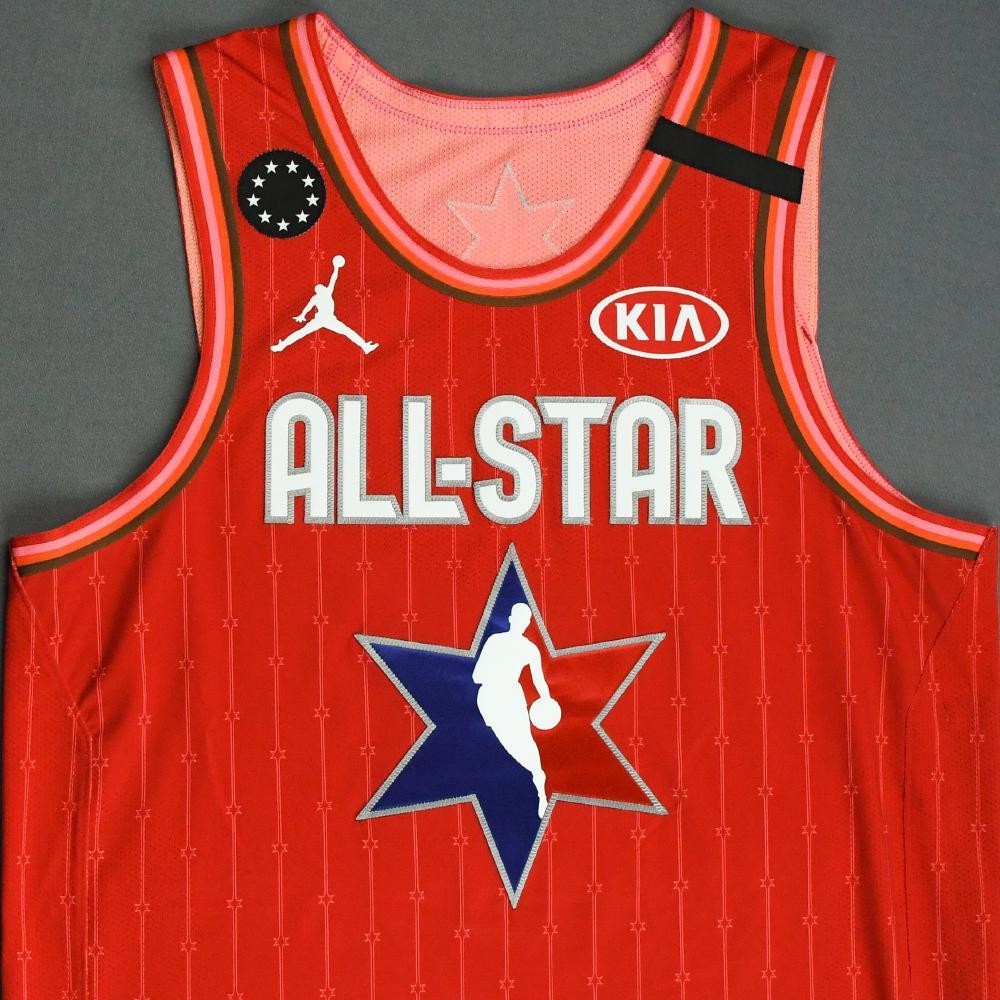 Eastern Conference All-Stars 2019-20 Home 球衣, 制造商为 由 Air Jordan ,该球衣于 NBA All-Star Game 2019-2020 赛季穿着。 Eastern Conference All-Stars 2019-2020 Home 球衣评分为 3.5 (5星为满分)。