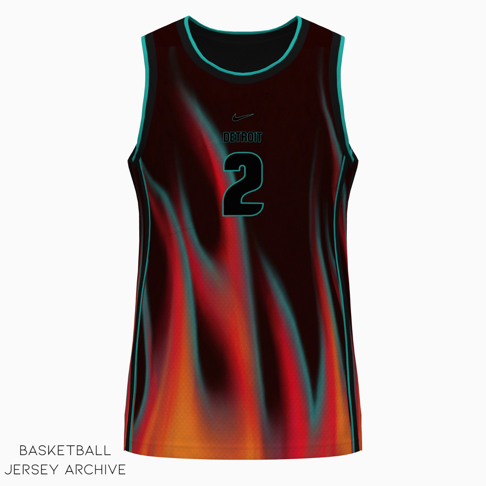 A brilliant "Motor City" tribute featuring retro teal accents and glowing hot rod flames rising from the waist
